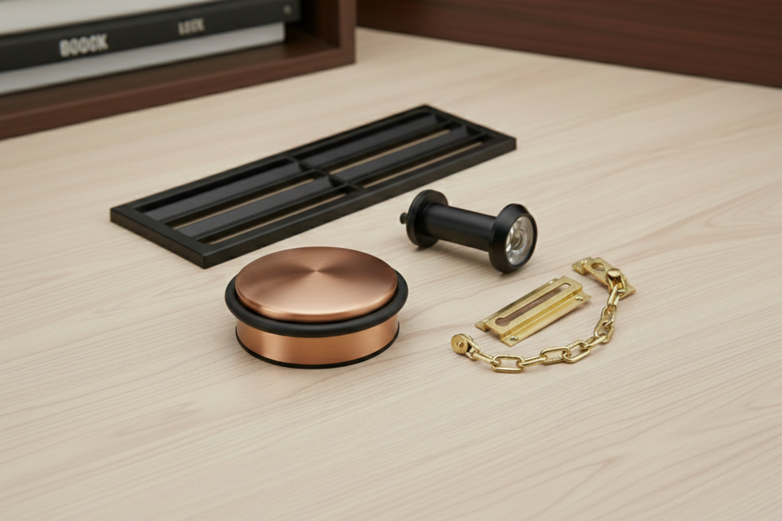 Pri výbere doplnkov sa držte pravidla jednotného štýlu. Ak máte kľučky v prevedení „čierny mat“, aj zarážka, priezorník a menovka by mali byť v rovnakom dekore. Na našom e-shope nájdete širokú škálu povrchových úprav, ktoré spolu budú perfektne ladiť.