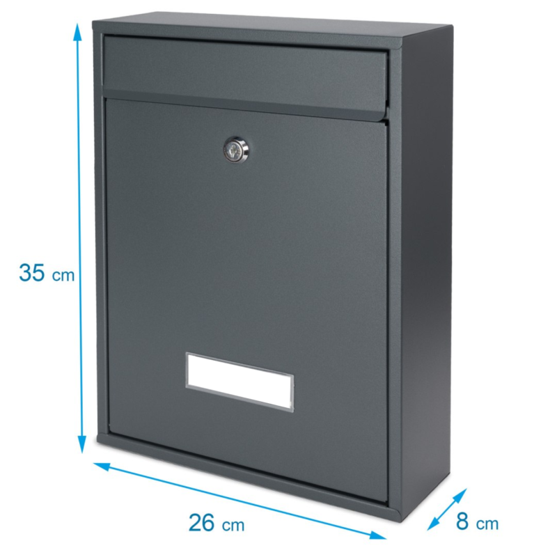 Klasická oceľová poštová schránka v dvoch farebných prevedeniach. Pravidelný tvar umožňuje montáž do zostáv. Veľmi dobrá veľkosť pre doručenie pošty - formát A4.