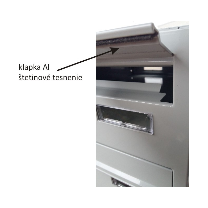 • Hliníková klapka + štetinové tesnenie / tesnenie bráni poškodeniu farby pri doklape /