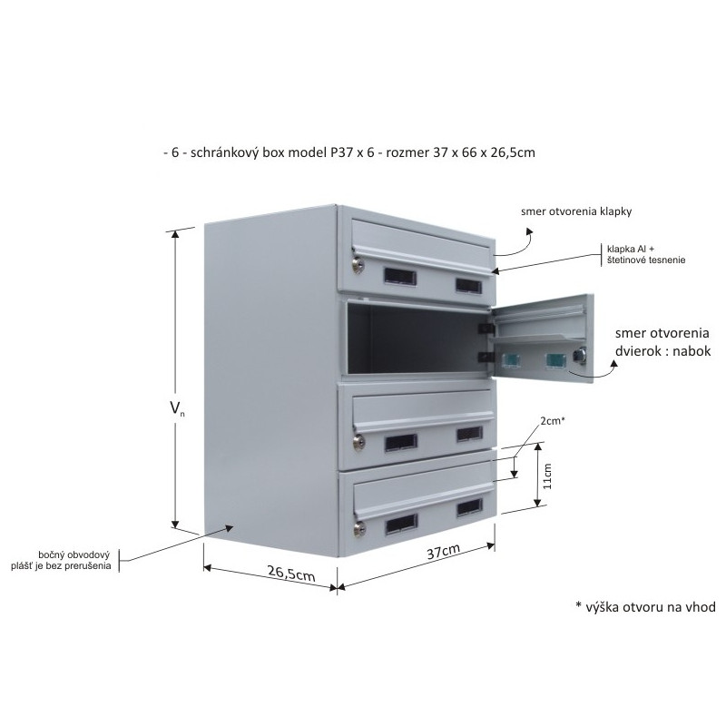• - 6 - schránkový box model M37/6 - rozmer 37 x 66 x 26,5cm / modul obsahuje 6. schránok