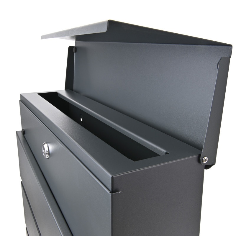 Bola navrhnutá pre pohodlie užívateľa a s prihliadnutím na súčasné estetické trendy. Je vybavená prídavnou priehradkou na noviny a väčšie letáky. Sada obsahuje montážne skrutky, pričom otvory sú pripravené na zadnej strane schránky - pre rýchlu a jednoduchú montáž.