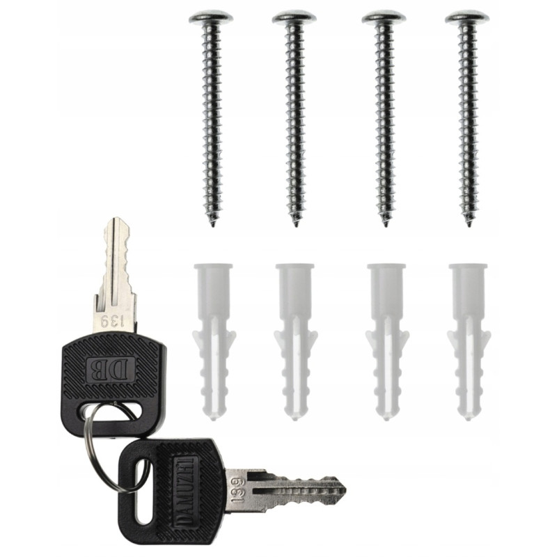 • Hmoždinky so skrutkami na montáž (4 ks) a dva kľúče v cene.