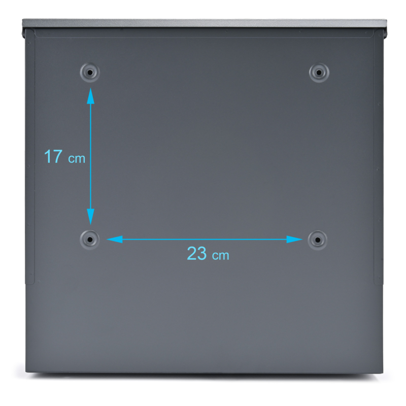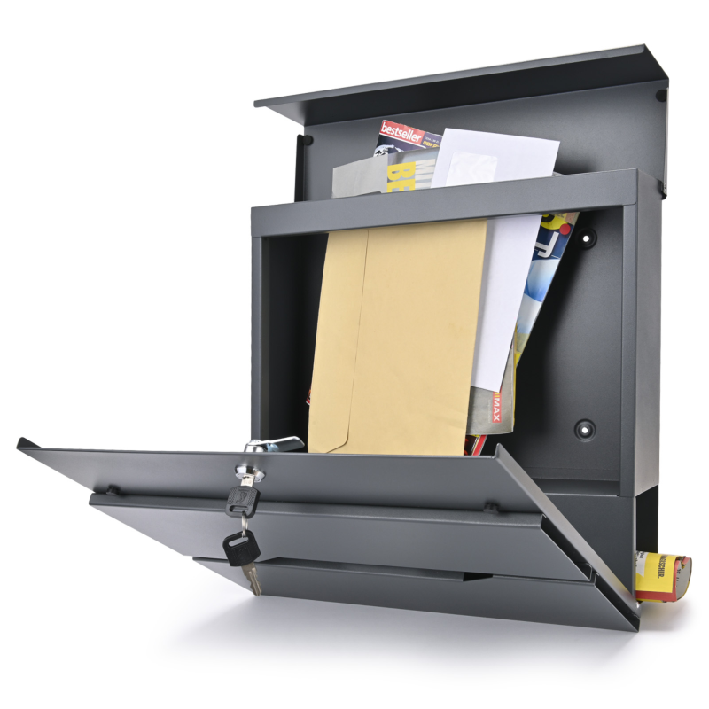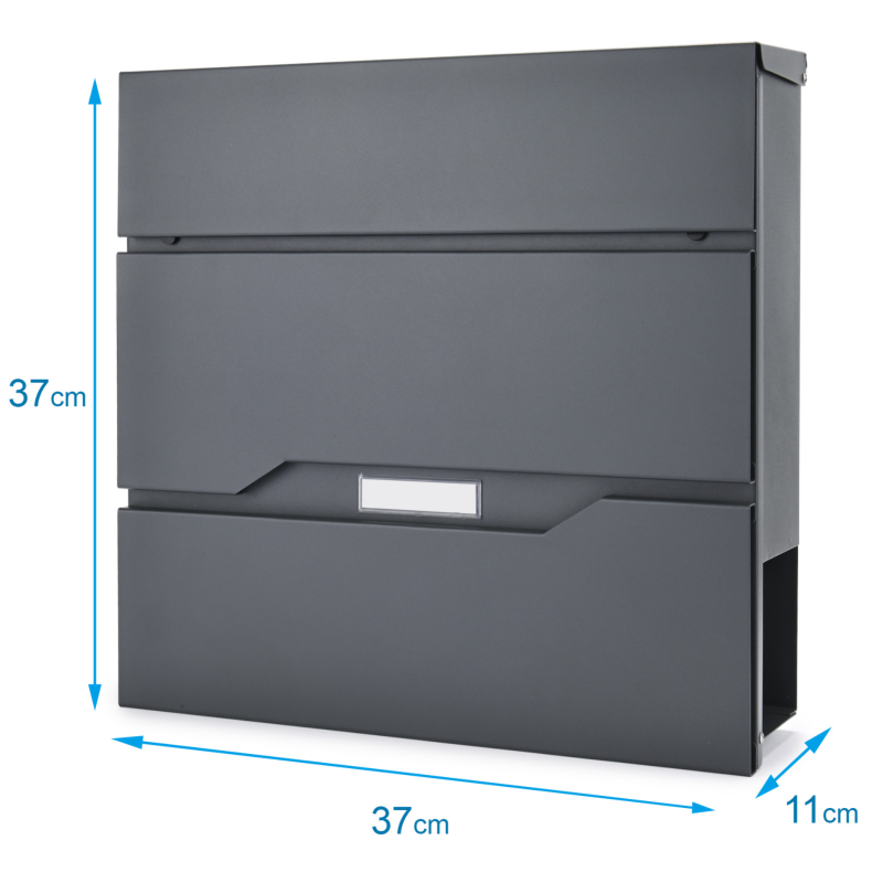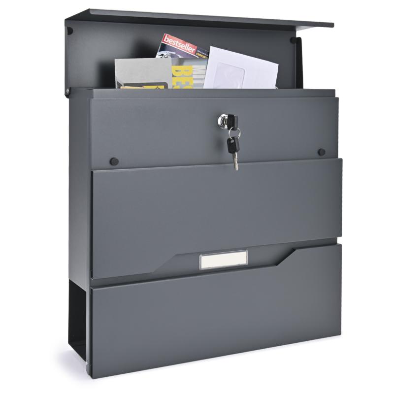 Kvalitná poštová schránka vyrobená z pozinkovanej ocele s práškovým nástrekom v antracitovej farbe , vďaka použitému materiálu je schránka je odolná voči poveternostným vplyvom. Bola navrhnutá pre pohodlie užívateľa a s prihliadnutím na súčasné estetické trendy. Obsahuje prídavnú priehradkou na noviny a väčšie letáky. Horný kryt schránky veľmi dobre chráni korešpondenciu aj zámok pred vlhkosťou a dažďom. Sada obsahuje montážne skrutky, pričom otvory sú pripravené na zadnej strane schránky - pre rýchlu a jednoduchú montáž.