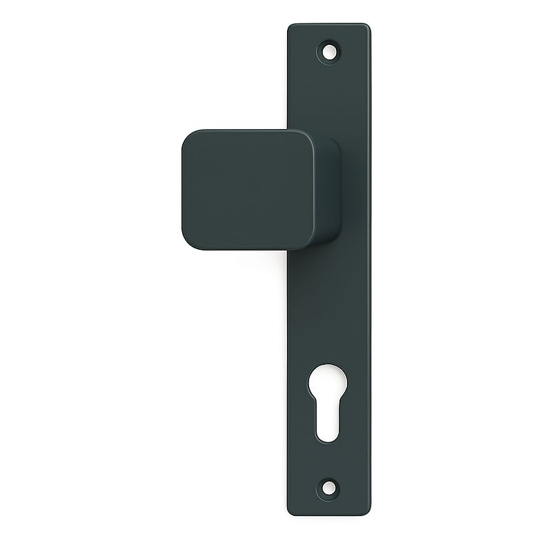 Moderná a elegantná kľučka-guľa K05G je určená pre vstupné brány a dvere. Kombinuje minimalistický dizajn s vysokou funkčnosťou a odolnosťou voči poveternostným vplyvom. Kľučky sú určené pre montáž na brány alebo plotové bránky v antracitovej farbe.
