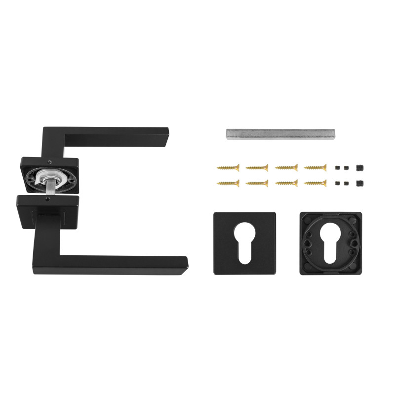 - Balenie obsahuje komplet na jedny dvere / jeden pár kľučiek / a dolné rozety na vložku