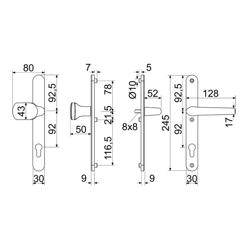 Dodávané štandardne pre hrúbku dverí: 72-92 mm - po skrátení štvorhranu a skrutiek od hrúbky dverí 40 mm