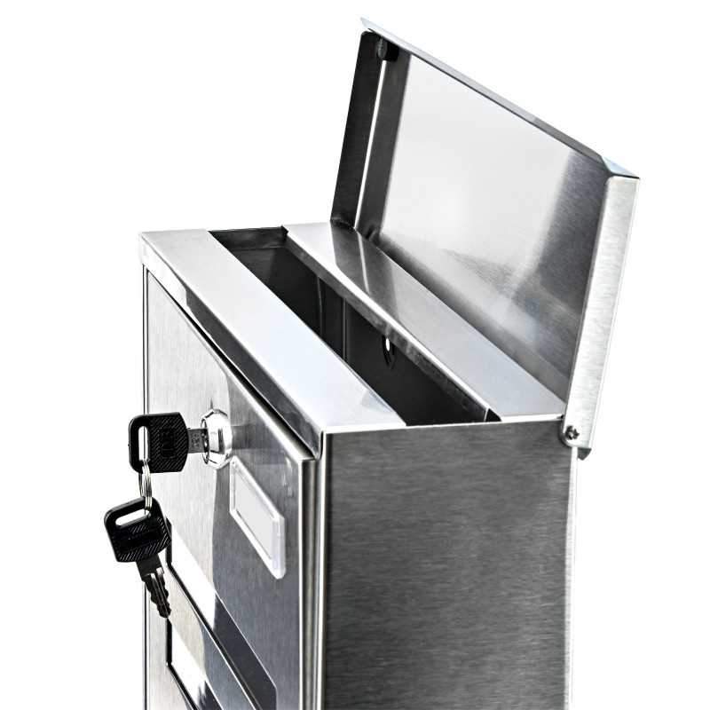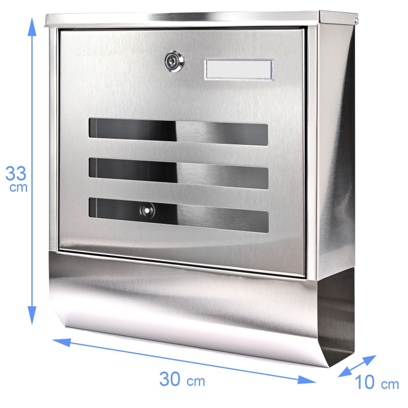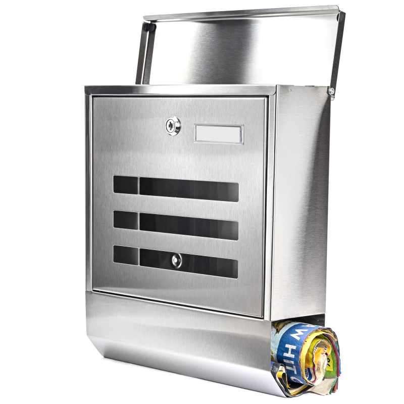 Kvalitná schránka z nehrdzavejúcej ocele. Poskytuje pohodlie pre používateľov vďaka navrhnutým 3 pozdĺžnym oknám s možnosťou priehľadu do vnútra schránky. Táto funkcia umožňuje skontrolovať obsah schránky bez toho, aby ste ju museli otvárať zakaždým. Len si skontrolujete prednú časť a nezabudnete si tak vyzdvihnúť svoju poštu. Schránka je vybavená dolným tubusom pre noviny a letáky (často tlačené vo väčšom formáte).
