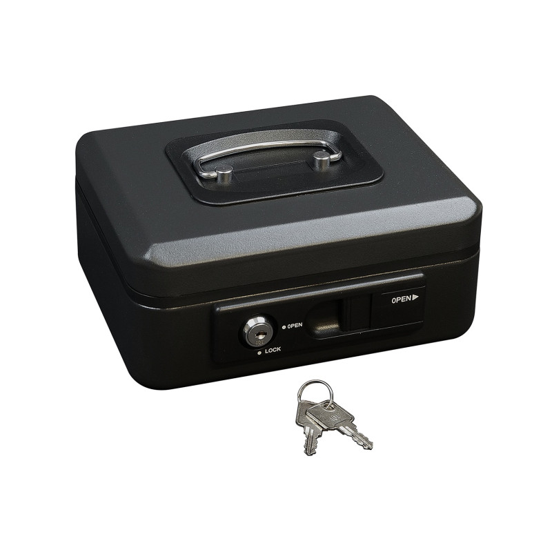 Pokladnička z ocele je vybavená vonkajšou páčkou pre pohodlné automatické otvorenie veka. Po uzavretí sa veko automaticky aretuje, čo umožňuje bezpečné prenášanie, bez nutnosti uzamknutia kľúčom.