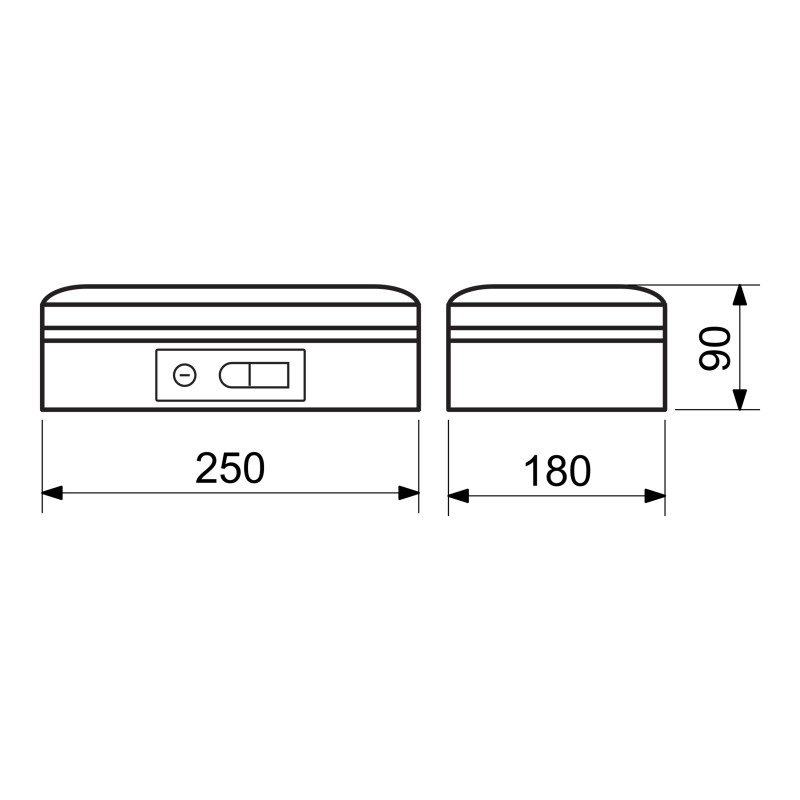 - Rozmery (š × v × h): 250 x 90 x 180 mm