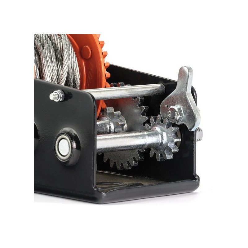 - Zaistenie nákladu prepínateľnou prevodovou blokádou vhodnou na navíjanie aj odvíjanie