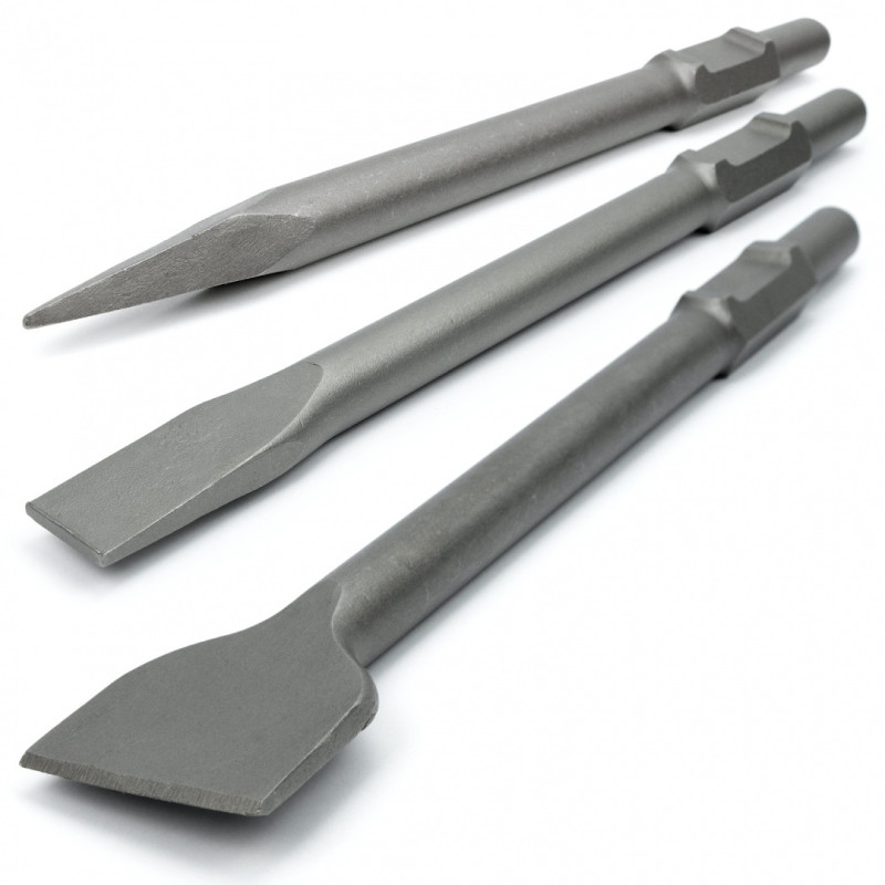Dláta so šesťhranným upínaním určené pre búracie kladivá, navrhnuté na profesionálne použitie pri sekaní materiálov ako betón, tehla, murivo, kameň a pod. Výborne sa hodia aj na renováciu škár či odstraňovanie výstužných prvkov. Vyznačujú sa vysokou odolnosťou a dlhou životnosťou. Pasujú na všetky zariadenia s uchytením typu HEX 30 – šesťhranné upínanie s priemerom 30 mm. Dláta sú kompatibilné s nami predávaným búracím kladivom SN1402.