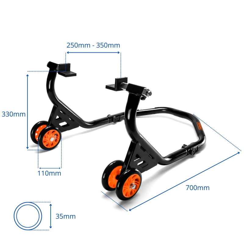 Ideálny na servis, údržbu, výmenu pneumatík a ďalšie práce na motocykloch. Nevyhnutný pre každého milovníka jednostopových vozidiel, zaručuje pohodlie a bezpečnosť počas všetkých servisných prác.