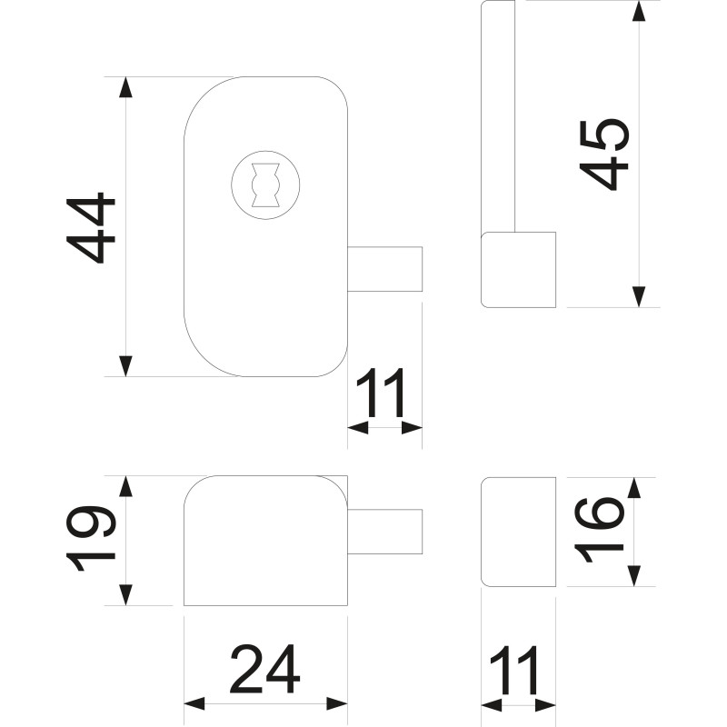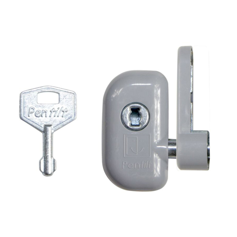 - Bezpečnostný výklopný zámok pre plastové, hliníkové a drevené okná. Umožňuje bezpečne otvorené krídlo len do polohy "vetranie".