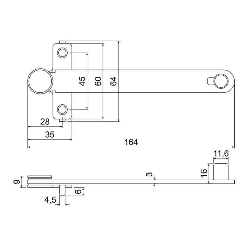 - Umožňuje aretáciu okenného krídla (pomocou trecích podložiek) do vybranej pozície (uhla otvorenia).