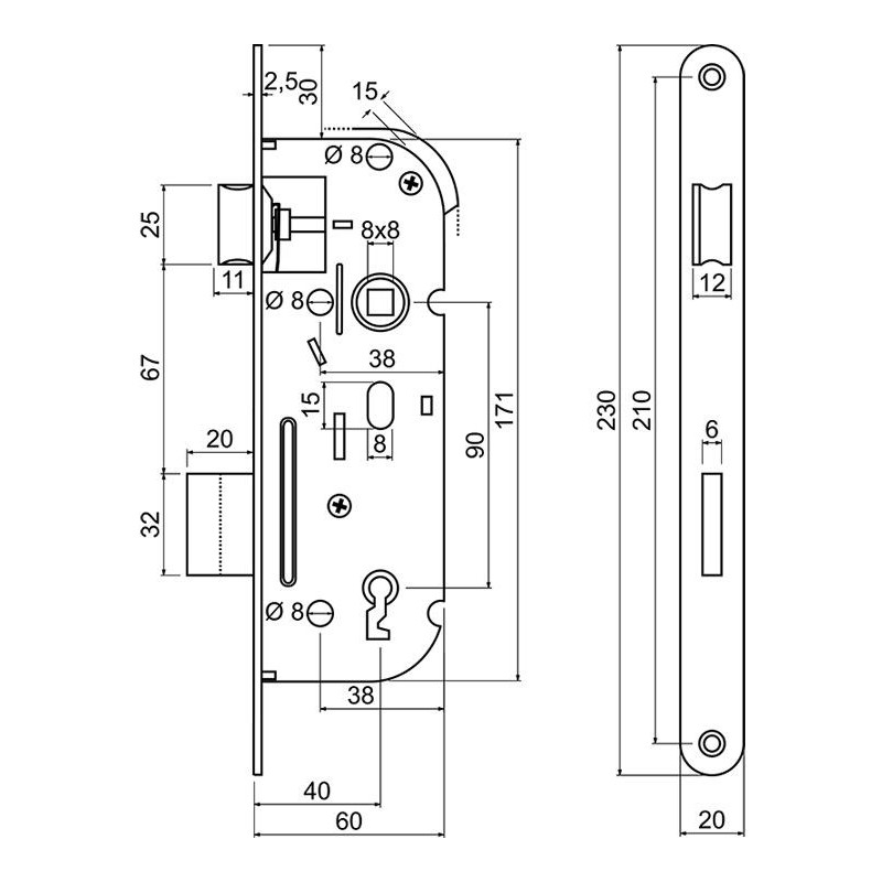 Z.301-BB.90/40/20.PL.CE zadlabací zámok na kľúč