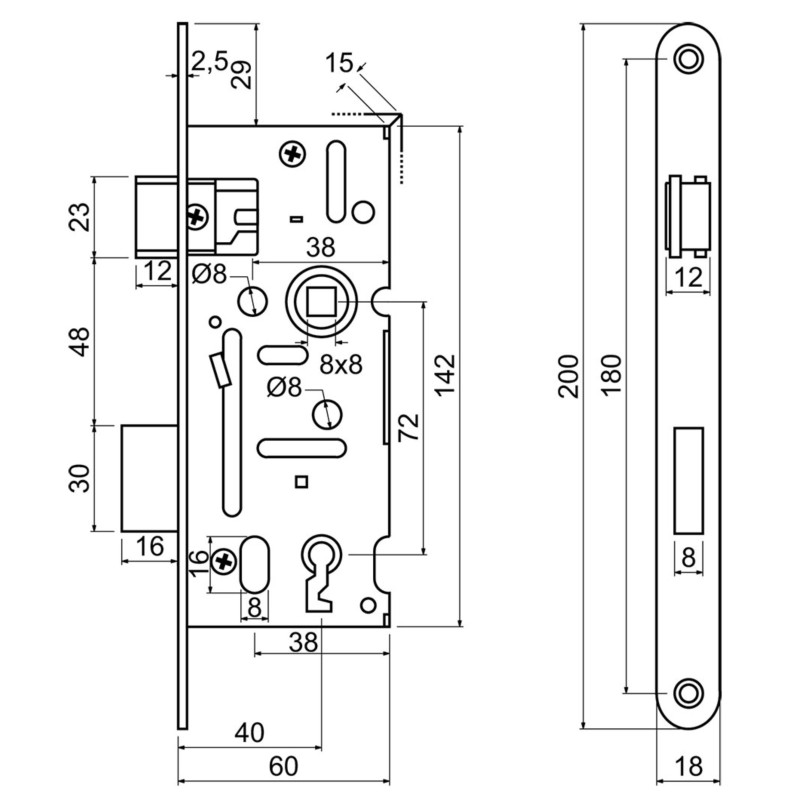 • Backset : 40mm