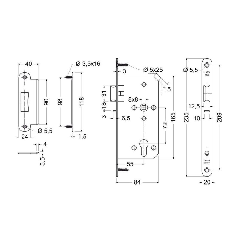 EN.304.BS.72.55.20.PL zadlabací zámok na vložku