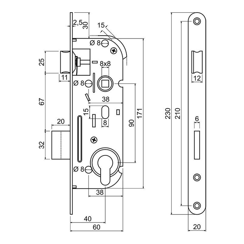 - Zadlabací zámok pre cylindrickú vložku – PZ